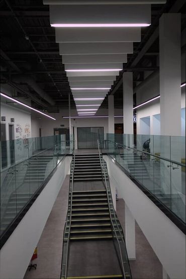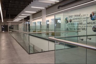 We created a glass and stainless steel void balustrade at De Montfort University in Leicester as part of our work within the education and commercial sector.